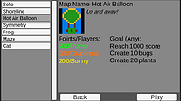 In Bugs Sim you compete against AI opponents to complete the map goal(s) before they do. You do not control your bugs directly! Each bugs has their own level of energy and hunger which they indicate t...